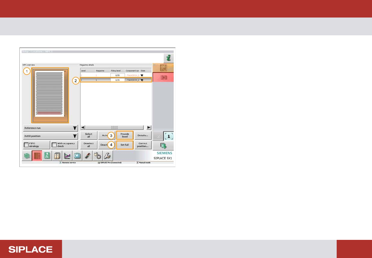 SW 703 Option WPC - Filling the WPC. : 114 Filling the WPC. 1. The Orange color indicates that the WP C is at the refill position. 2. Highlight the WPC level to be filled. 3. If the tray is part full th en click ‘Provide…