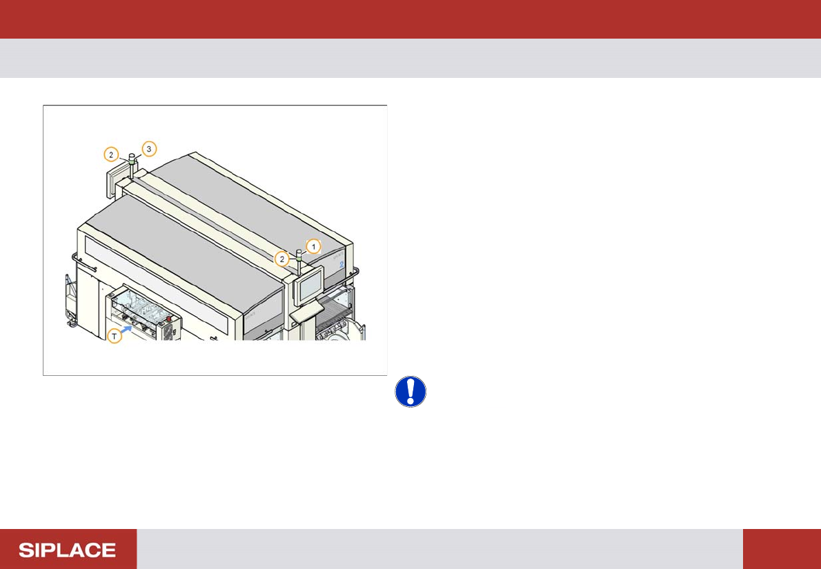 703-GUI Overview - Light Towers : 125 Light Towe rs Use the light tower s on t he statio n to check the ma chine status. 1. White fault indicator for the righ t side of the machine. 2. Green Operat ing status indicato rs…
