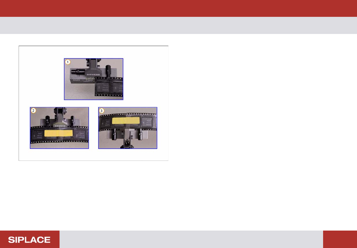 Refilling Component Reels - Spl icing of wide carrier tapes : 133 Splicing of wide carrier t apes Handle wide tapes the same way. 1. Place the end of the carrier tape over half of the rivet and close the lock 2. First sp…