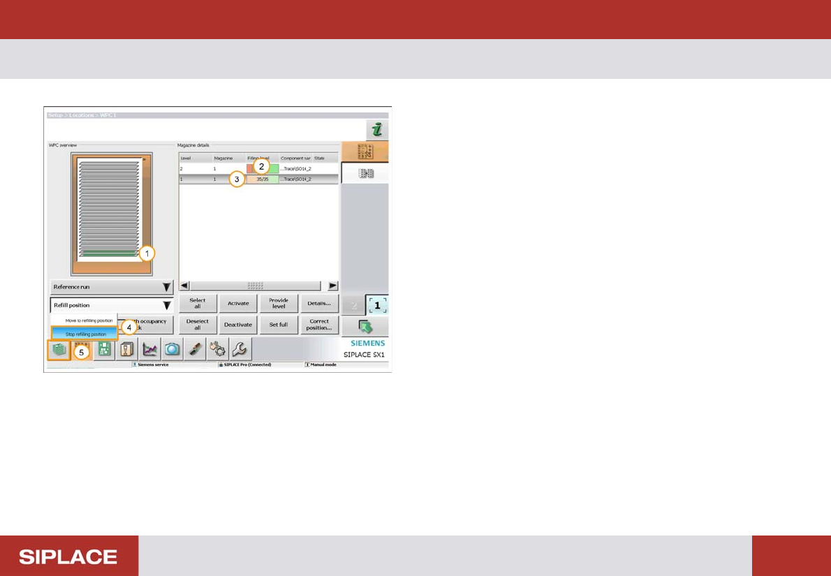 4. Select ‘Refill position’ – ‘Stop refilling position’.