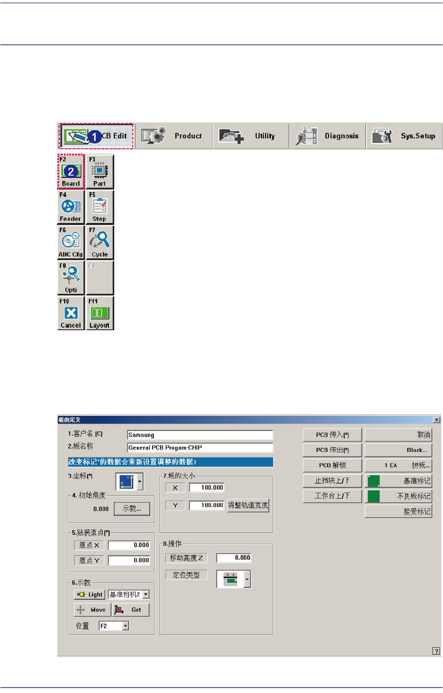<基板>菜单使用于编辑部件贴装PCB (Printed Circuit Board / 打印机电路板)的贴装