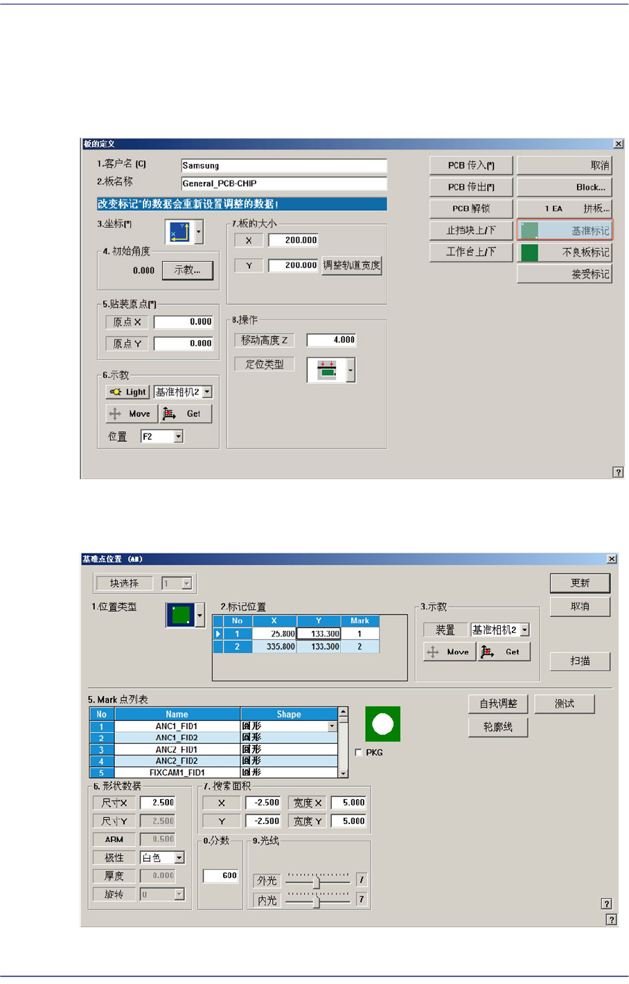 PCB上有基准点标记时,设定基准点标记的位置和标记的数据。
