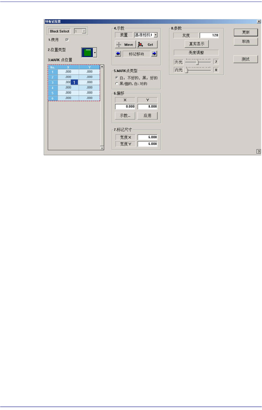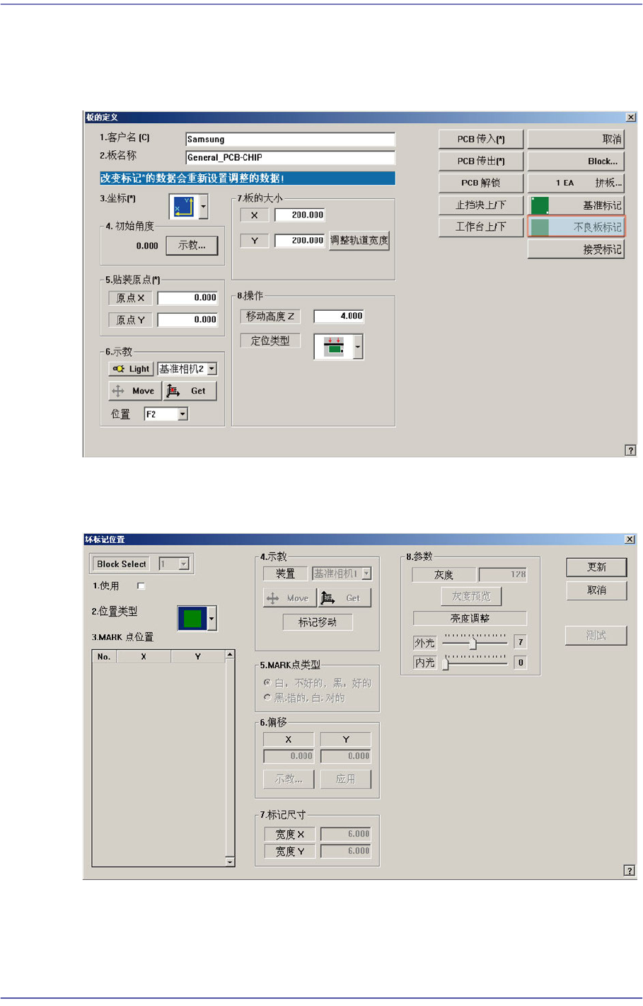 点击<不良板标记>按钮时,显示如下 Bad Mark数据编辑对话框。