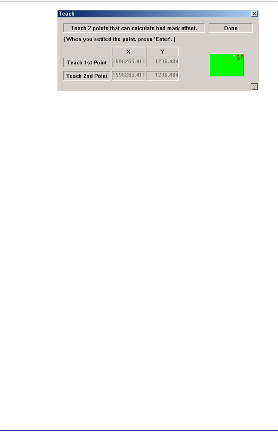 示教Bad Mark偏移。 此按钮示教Bad Mark的偏移量。按下此按钮时依次显
