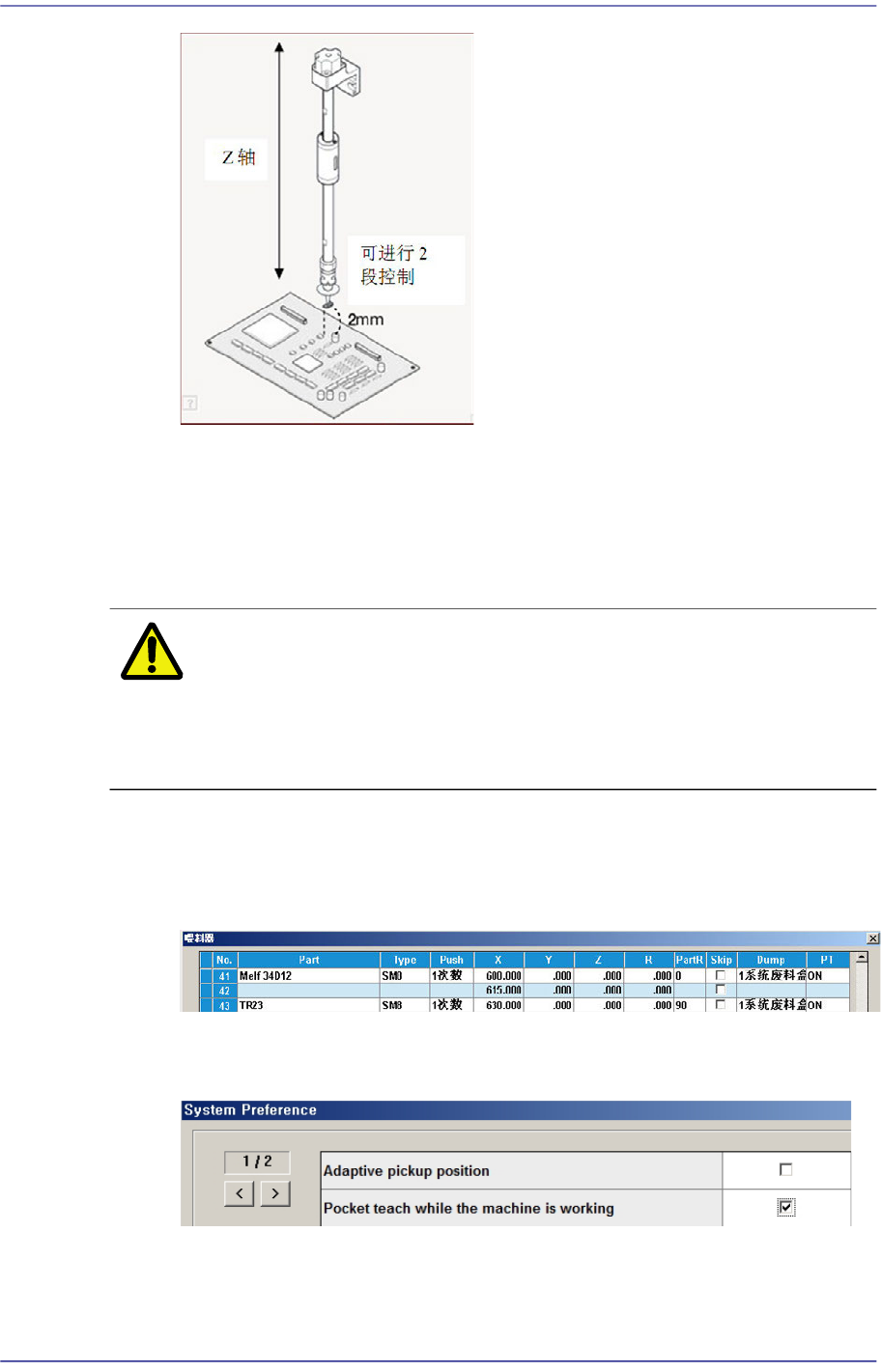 装、头部下降时,与PCB顶面距离2mm时Z轴速度为4(Slow)。