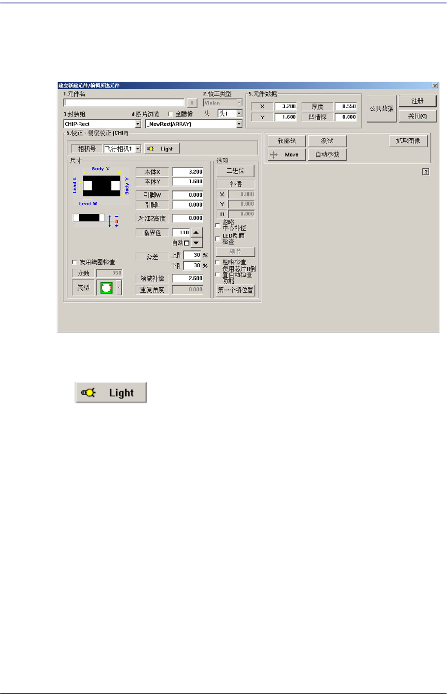 设定识别部品用摄象机的照明度。 详细事项请参照 “7.1.1