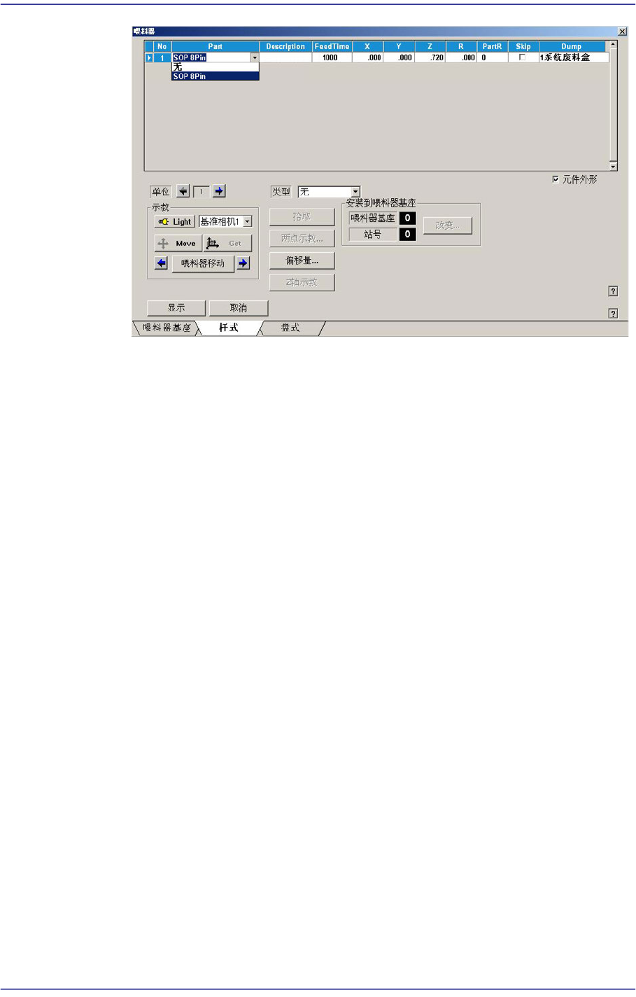 该Slot上装有管式喂料器时,设定吸附Stick Feeder供给部件的Z位置。