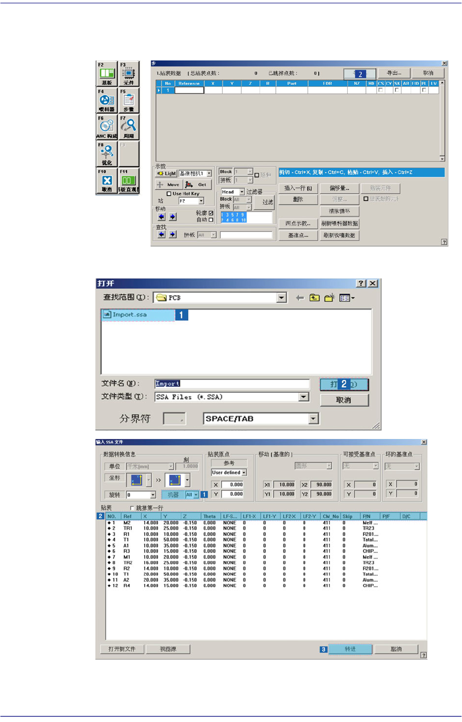 Step对话框中为了对选定的贴装点进行贴装时使用。