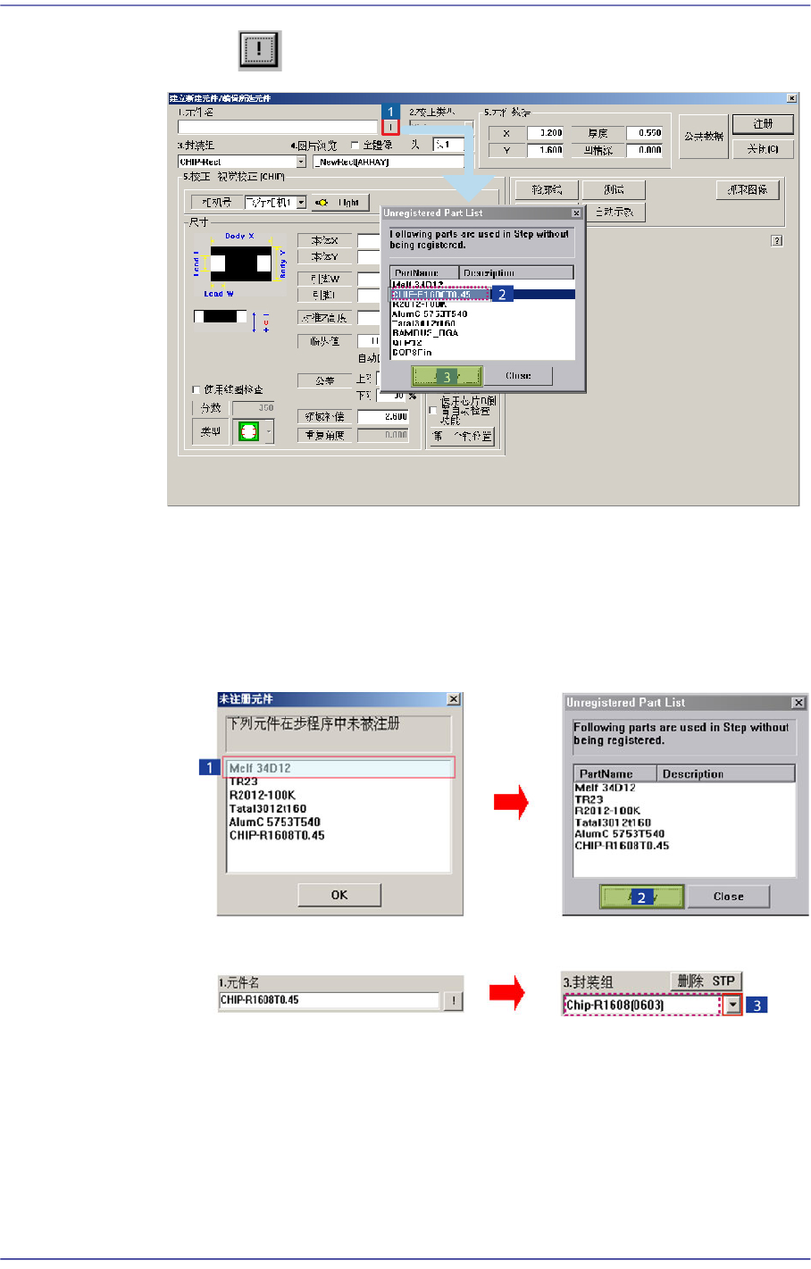单击 按钮,如下图出现未登记元件清单。