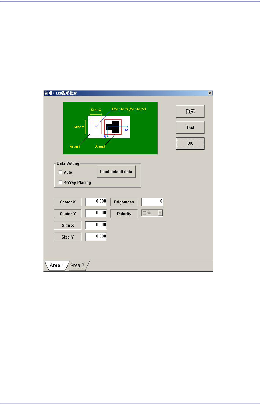 在“Area2”选项卡对话窗口设定LED的Black区域。