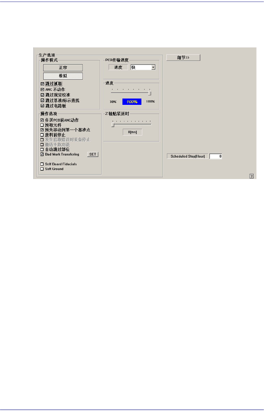 13-8 Next Generation, Multi-Function al Placer DECAN S1 Administrator’s Guide 13.1.2. 运行设定 以图表的形式表示 PCB 投入到输 送机的情况, 以百分比 的形式表示 P CB 的作业进程 图 13.4 “ 运行设定 ” TAP 对话框 < 操作模式 > 领域 设置驱动 Mode 。 可选择的 Mode 如下。 正常 模式 执行实际…