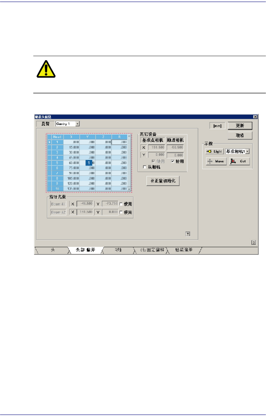 注 意 实际各磁头贴装时,反映偏移值进行贴装,因此用户任意修改设