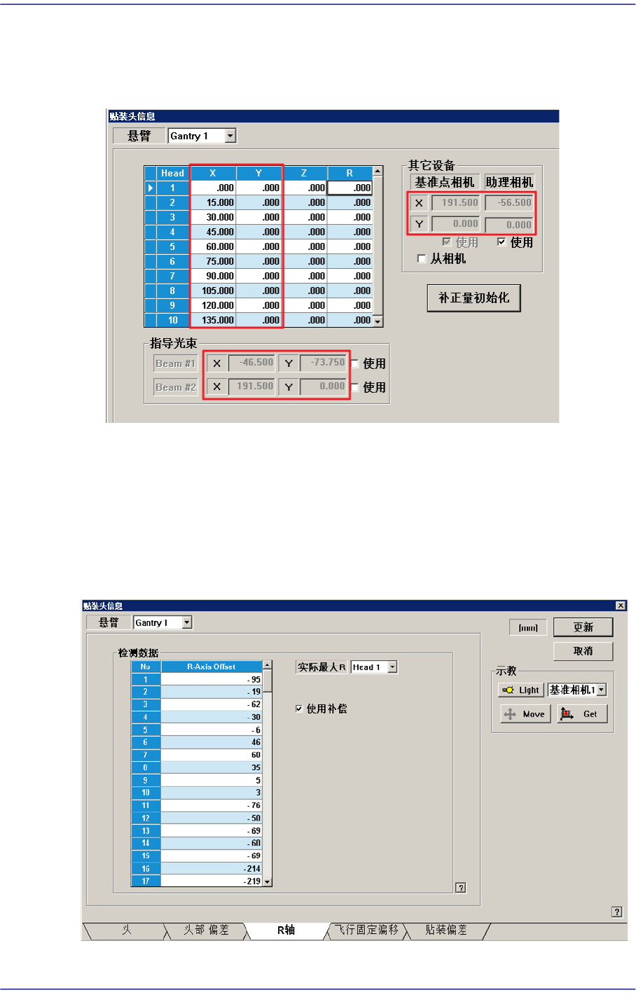 显示各磁头的R轴补偿值,或设置R轴的补偿与否。 Camera Calibration过程中执行