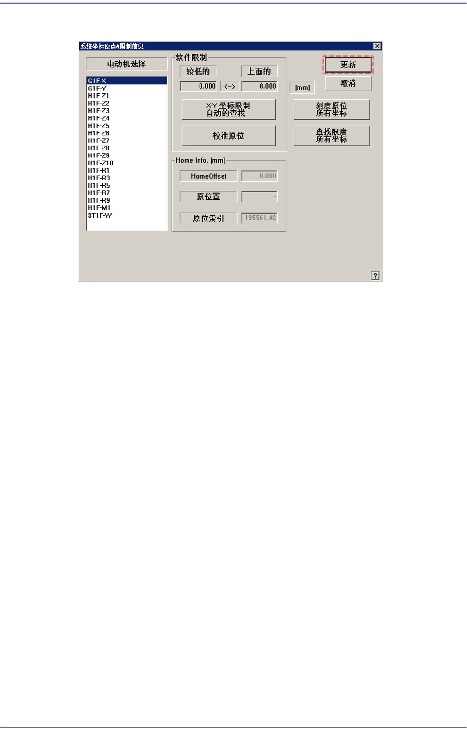 4. 点击<FIND LIMIT ALL AXIS> 按钮。