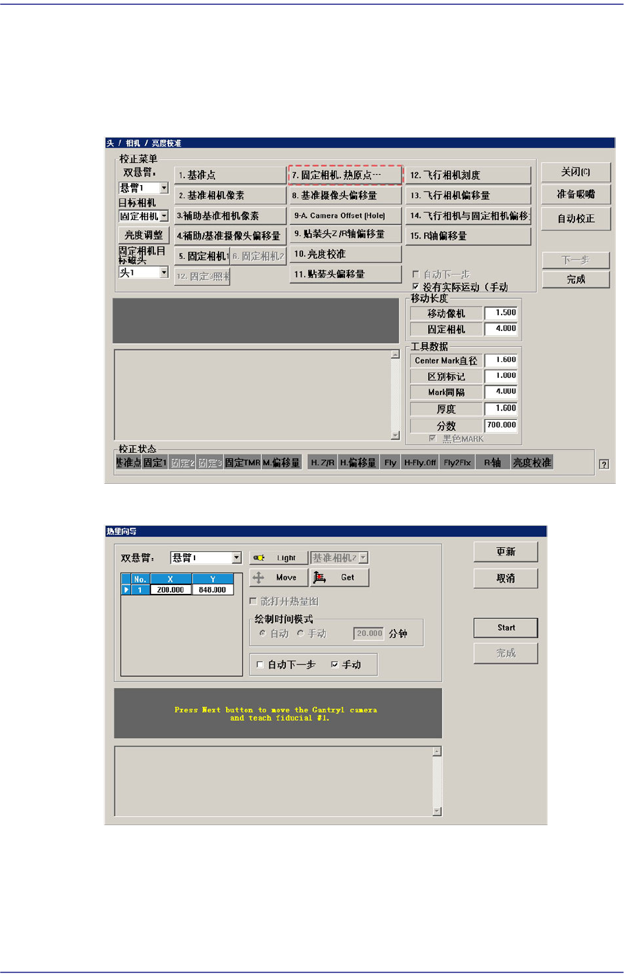 下面是 Fiducial Camera Offset的校正步骤。