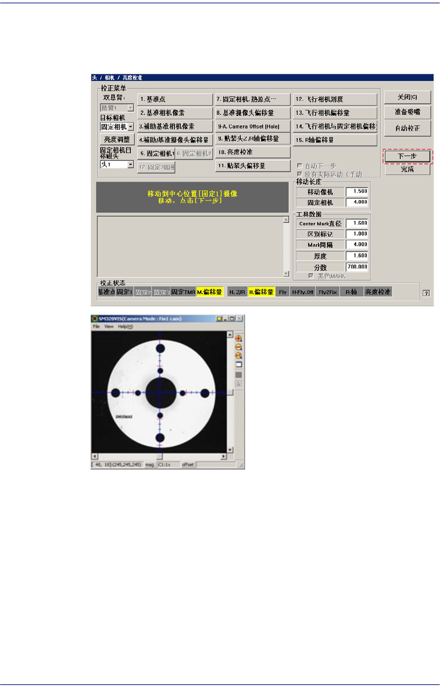 为了把基准相机移动到Fix Camera Hole 位置,请点击<Next> 按钮。