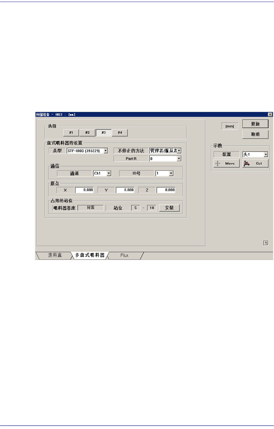 15-17 系统设置 STF-100D [393229]: 是 24 阶 Non-St op 托盘式喂料器。 STF-100S [393230]: 是 20 阶 Non-Stop 侧 (Side) 托盘式喂料器。 STF-100E [393231]: 是 20 阶托盘 式喂料器。 < 不停止的方法 > 复选框 设定 Non-Stop 功能的使 用与否。 None: 不使用 Nons top 功能 。 …