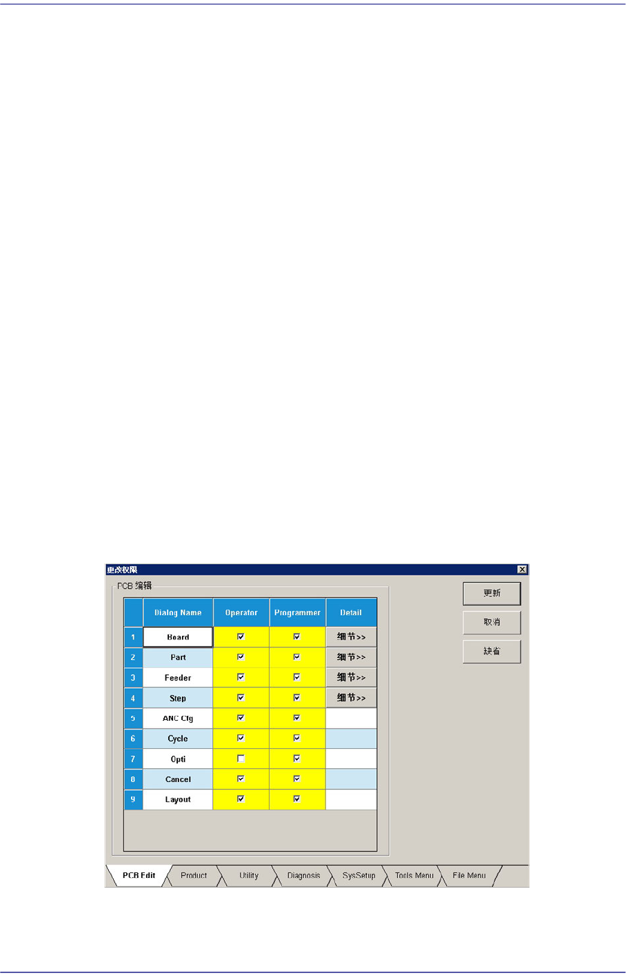 针对<PCB Edit>菜单的子菜单设置其权限。