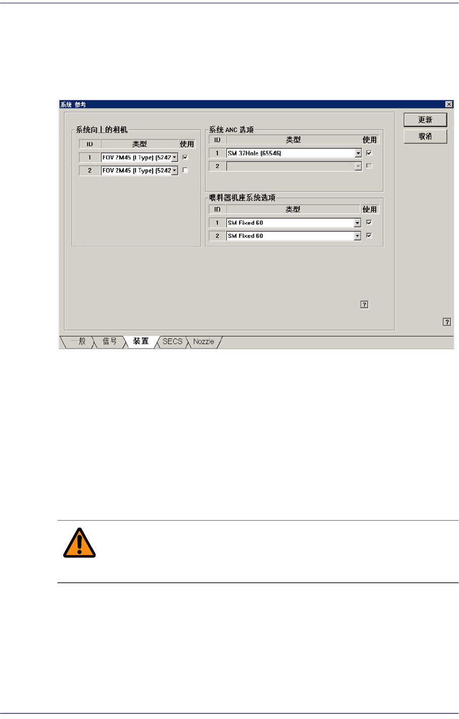 警 告 非指定的操作人员改变设置状态会导致设备损伤及人员受伤。非
