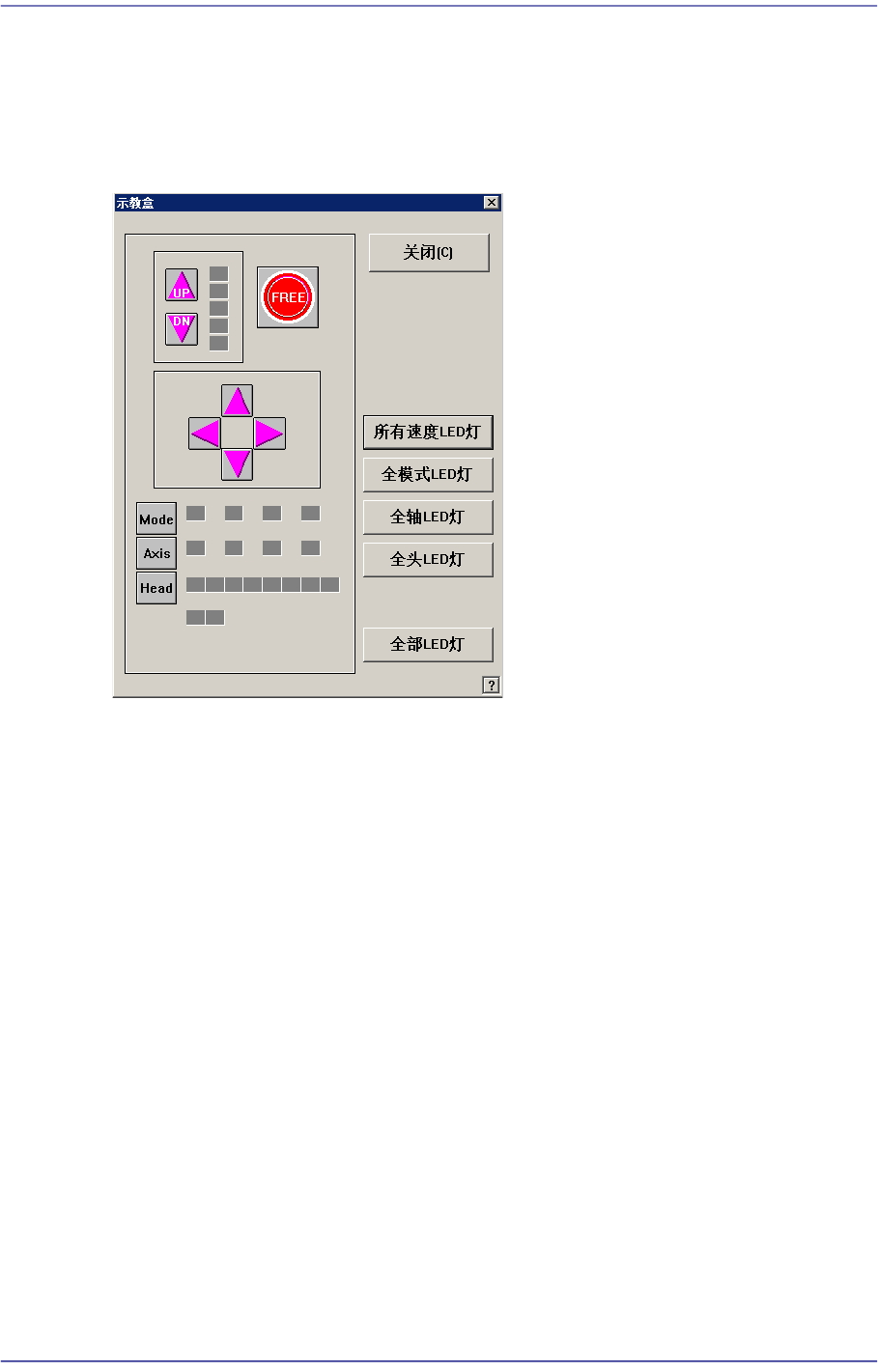 开/关全部 轴LED。