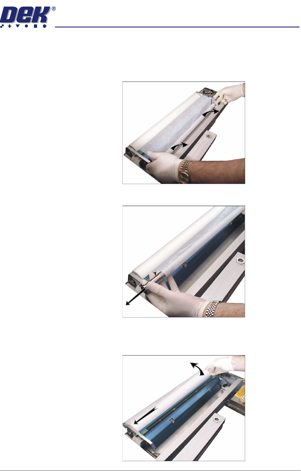 spindle in the right hand end plate. Lift the take up roll clear of the unit.