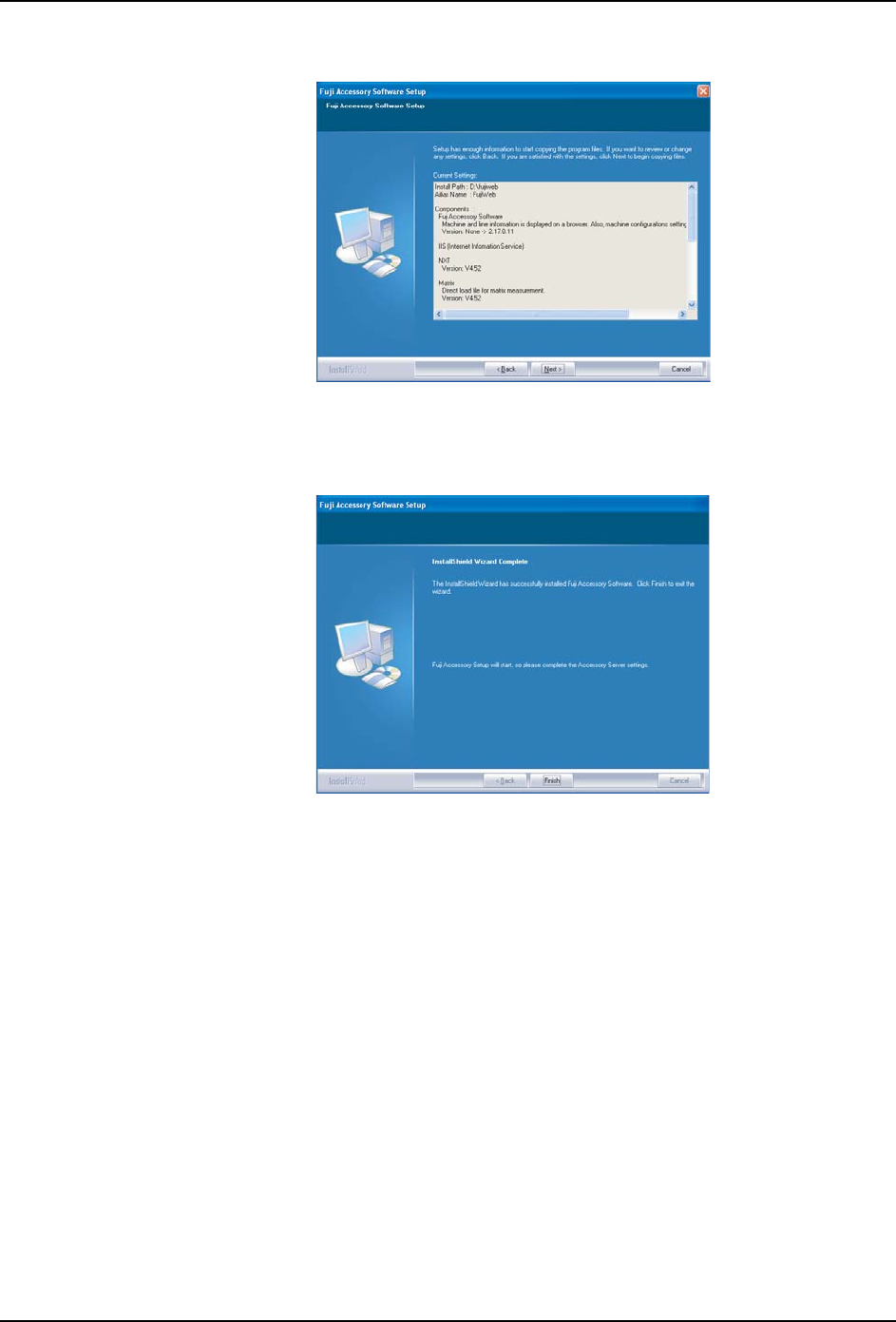 5. 安装 FUJI 附加软件 SET-NXTIIc-1.5S 112 NXT IIc 安装手册 8. 确认安装的设定内容,单击 [Next ]。 9. 显示出要求 Windows 安装用软盘的信息 后,请插入到 CD-ROM 驱动器,单击 [OK ]。 10.显示出 FUJI 附件软件的 安装完成画面后, 单击 [ Finish ] 。 01SET-0224E 01SET-0227E