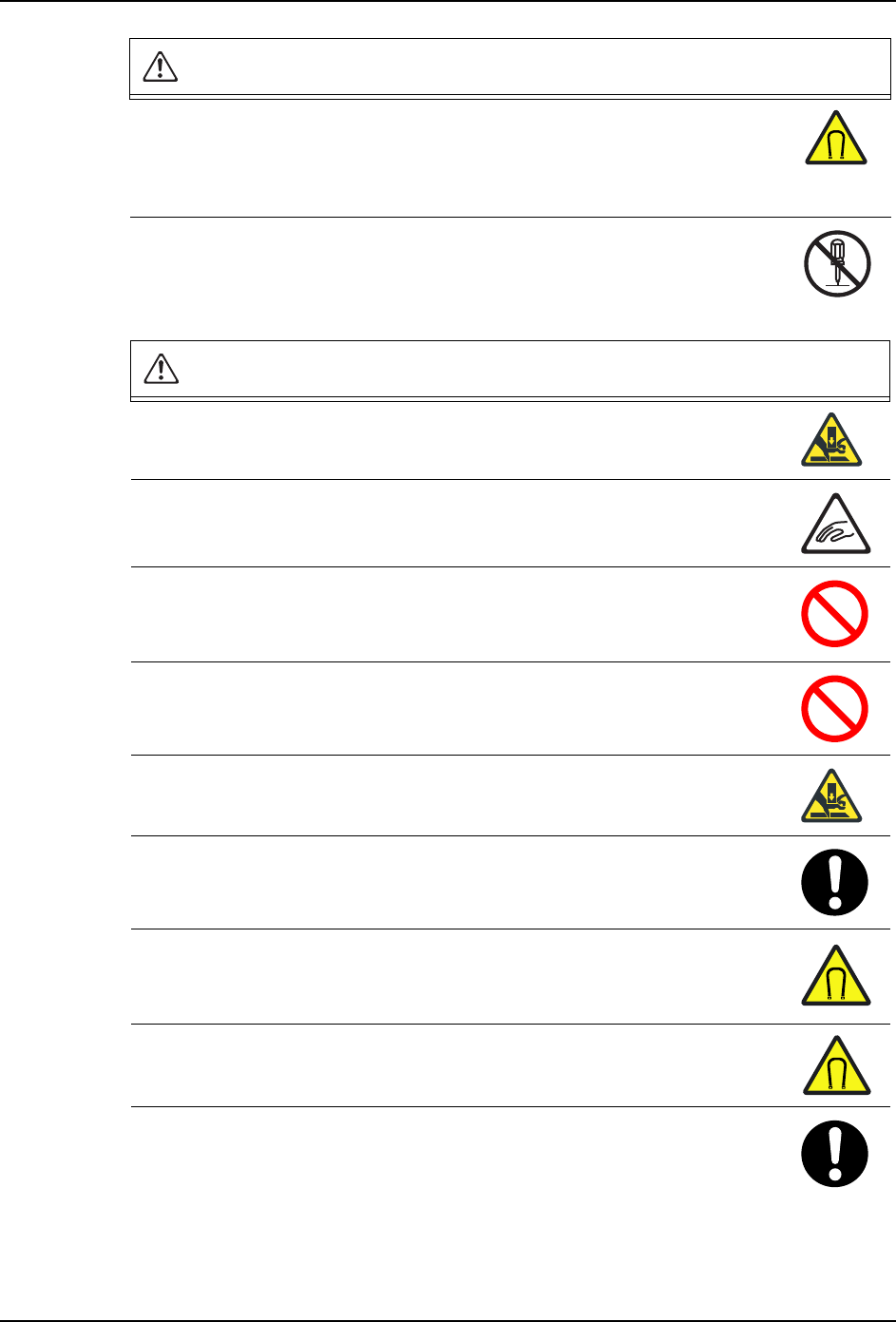 ·手有可能被夹住、手足有可能被碰撞而受伤。