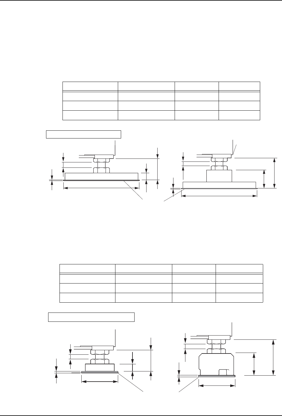 备注 )不能使用地脚螺栓将基座固定在地面上时,需要使用表中的水平垫和防震垫,调整水