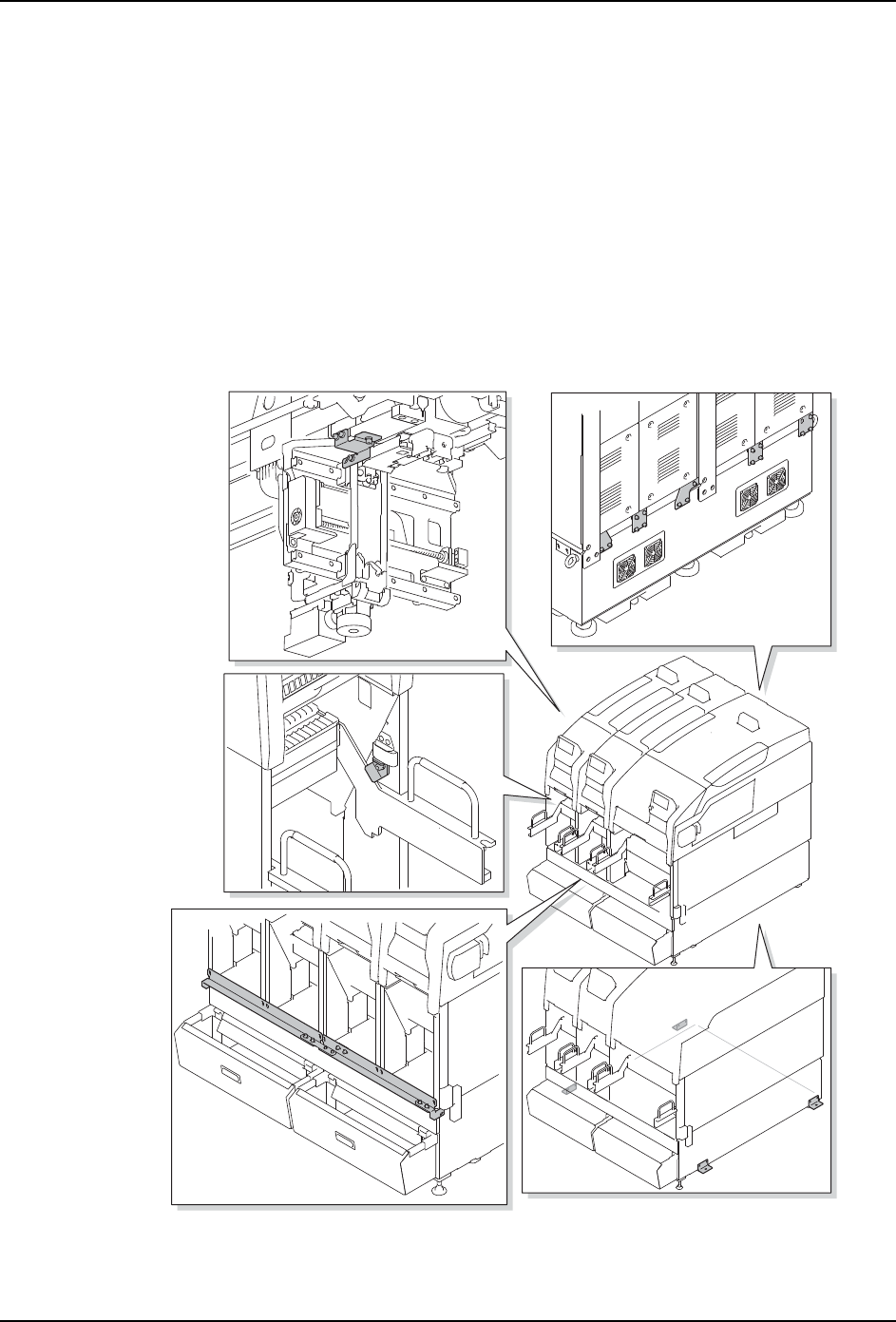 1. 在机器的运转部分安装有固定支架 (红色),请从机器上拆除以下的所有的固定支架。