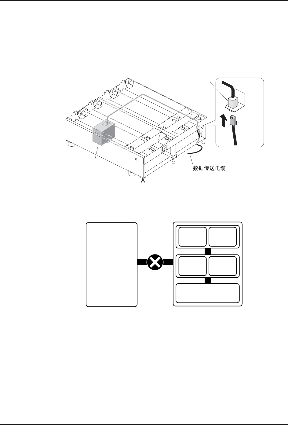 1. 将数据传输电缆的接插头连接至集线器或网络上指定端口的以太网接口。