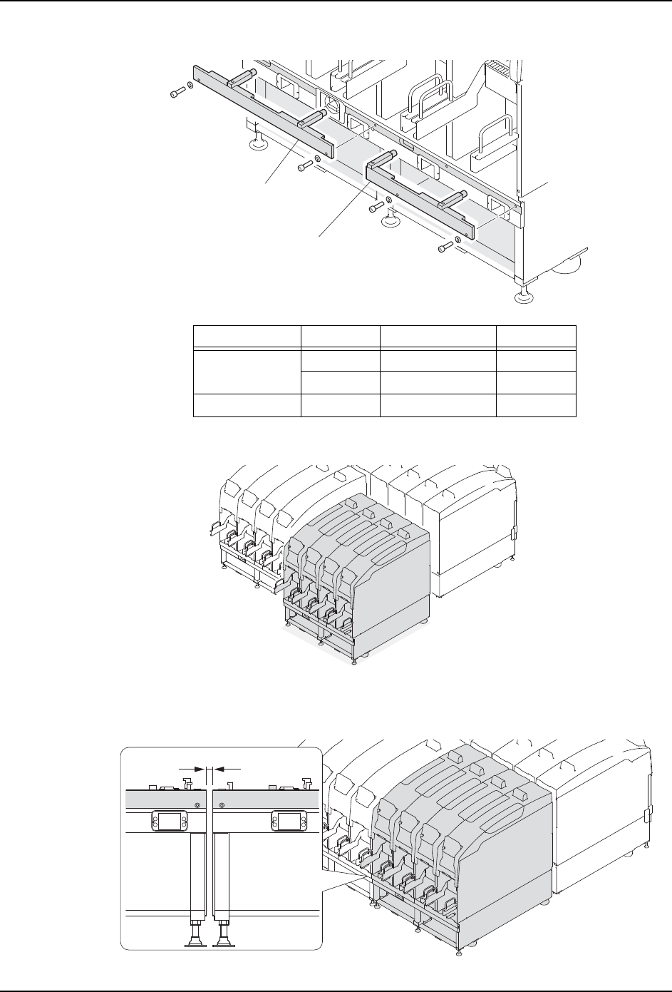 3. 机器的安装 SET-NXTIIc-1.5S 66 NXT IIc 安装手册 6. 请与前工序侧的基座一样进行调整水平。 在此的调整水平是临时操作,把调 整水平螺栓 的锁定螺母松拧紧。 7. 请拆除防夹治具和水平仪,插入模组。 8. 微调整基座的位置和高度。 a. 前工序侧的基座没附带有模组拉出挡板的 时候,请安装这个部件。在此,使用 模组 拉出挡板作为基座位置调整治具。 b. 把基座位置调整治具前面做为基准,请调 整基座前后、左右…