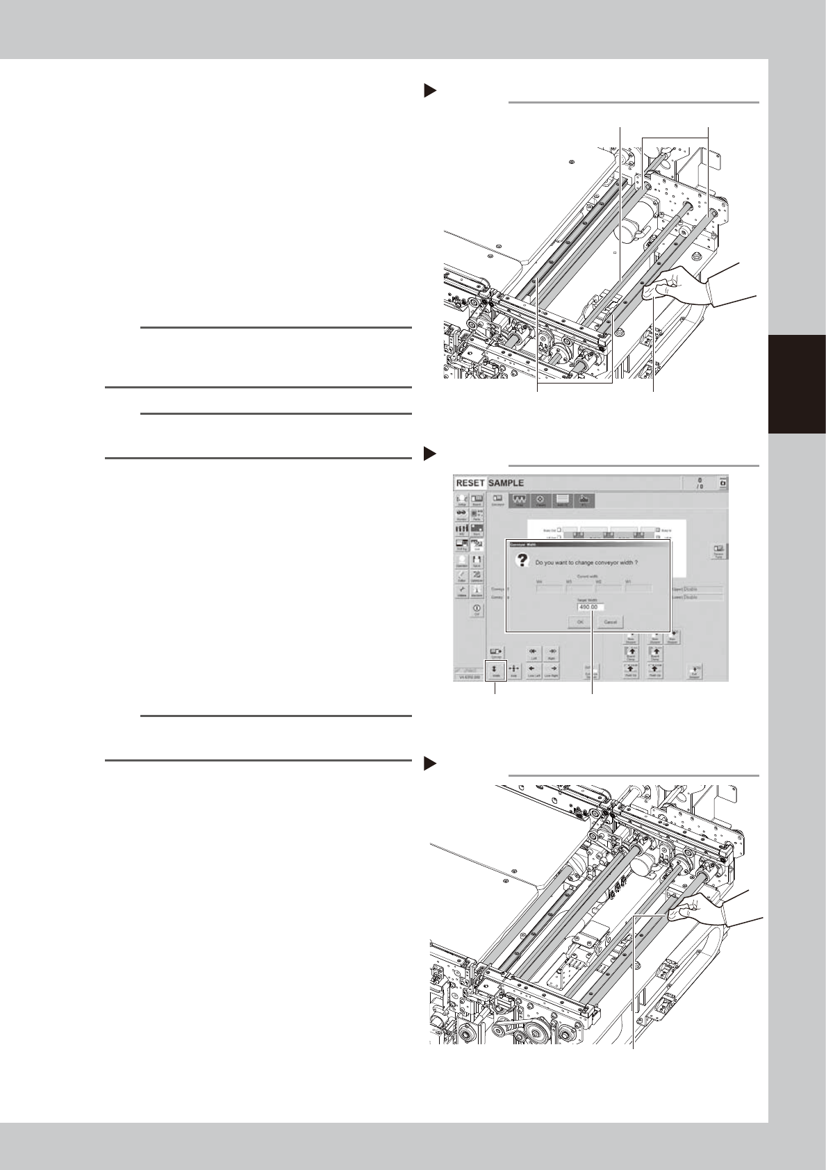 3-53 3 Periodic maintenance items e 4 Clean each part of W/U ax es. 1. Press the emergency stop button and then open the machine safety cover . 2. If the machine is carriage type, detach carriage to access to the conveyo…