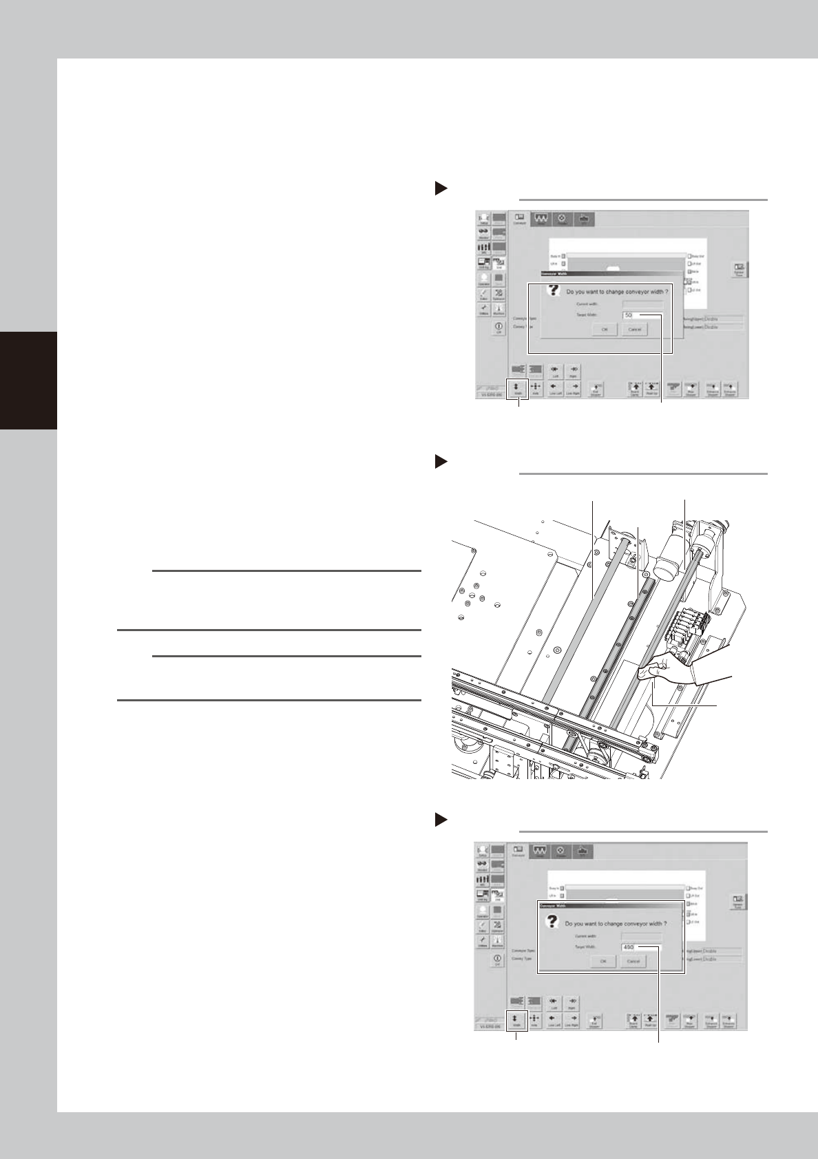"Conveyor Width" screen.
