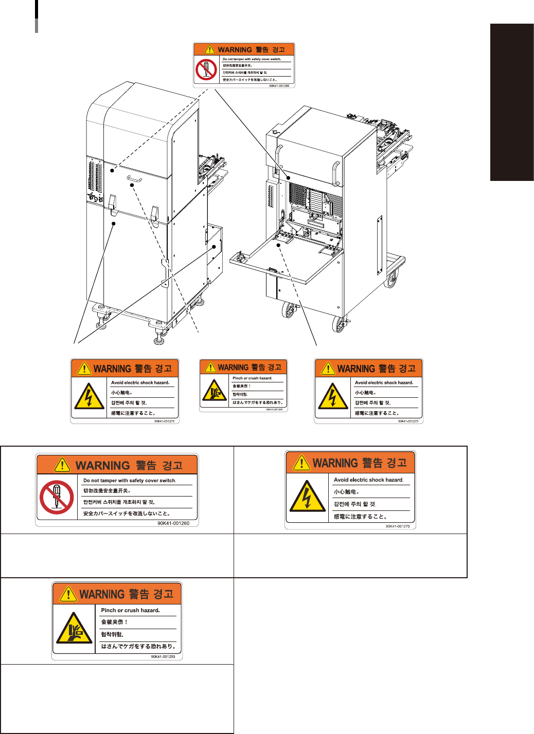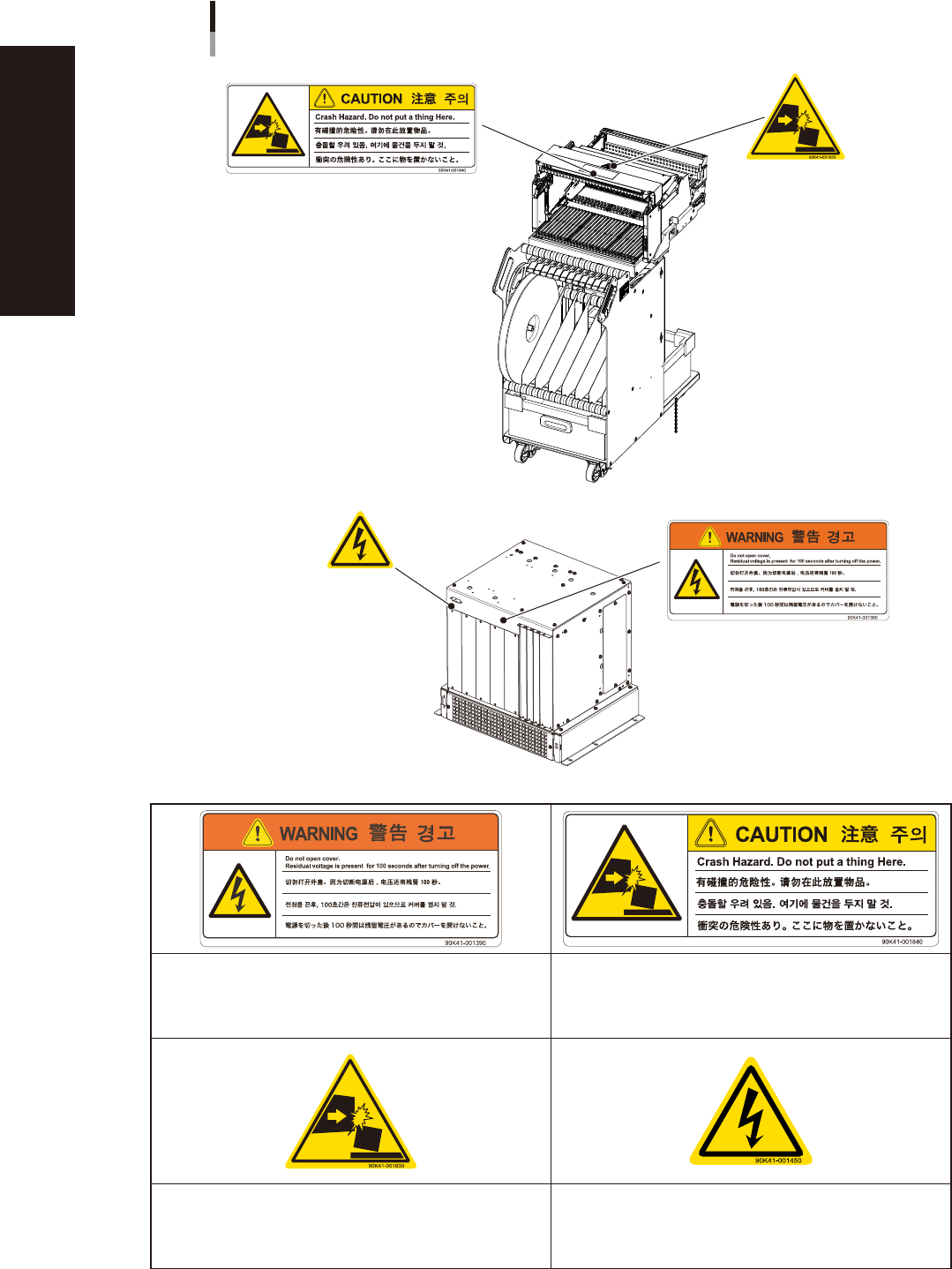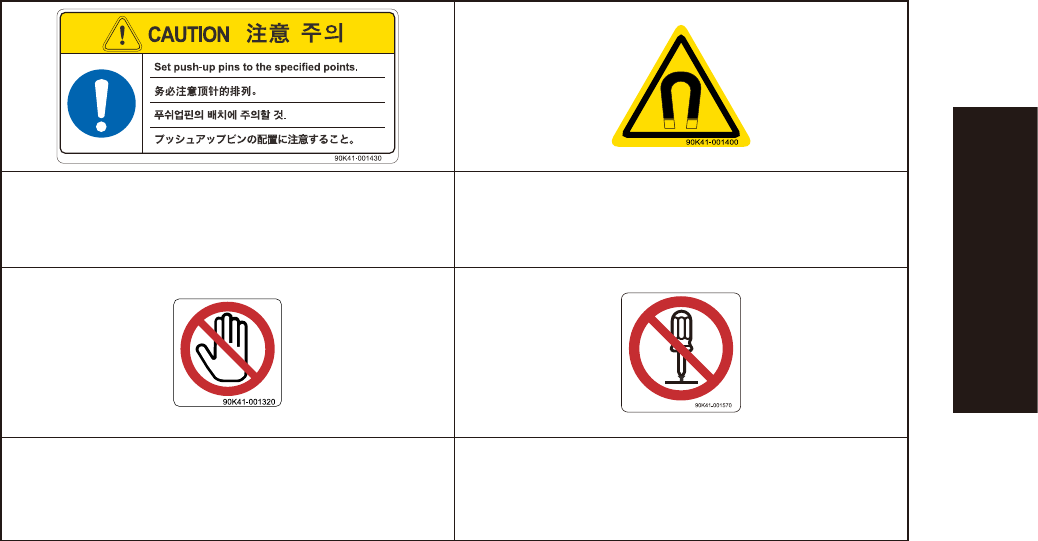x Safety instructions n Label positions W arning/caution labels Other Controller Exchange carriage for ZS feeder ■ T op of controller ■ T op of carriage 93014-KMK-00 Electrical shock hazard Could cause machine damage (co…