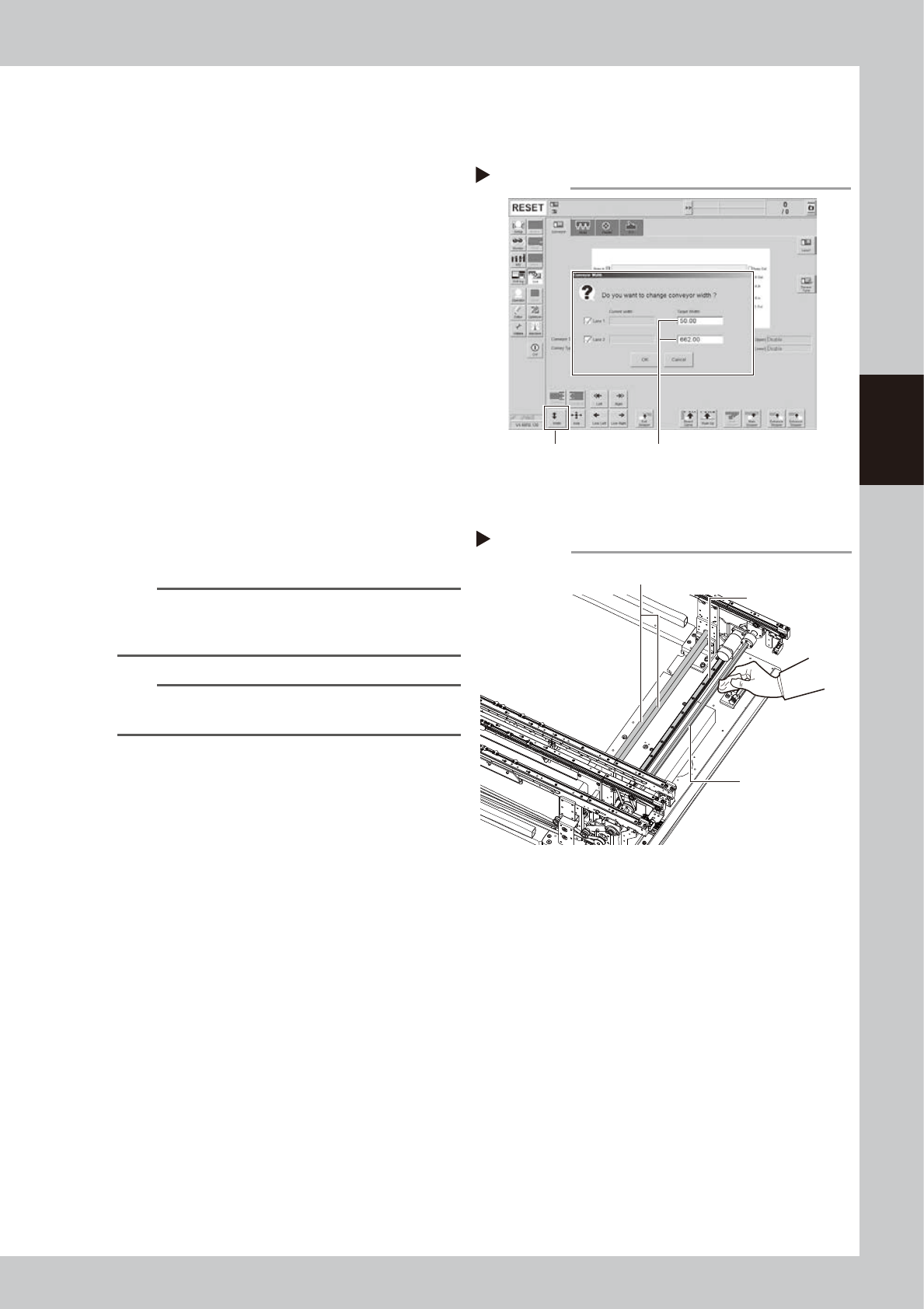 2. Change the conveyor width to maximum