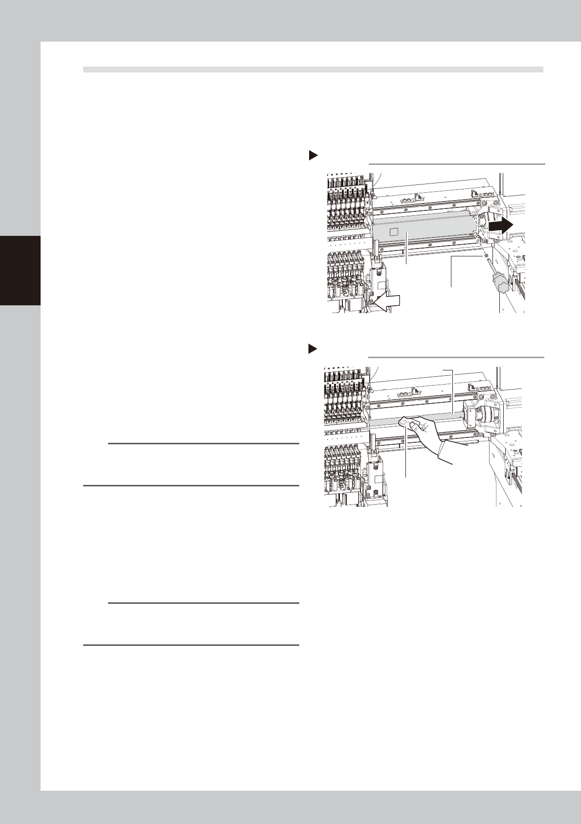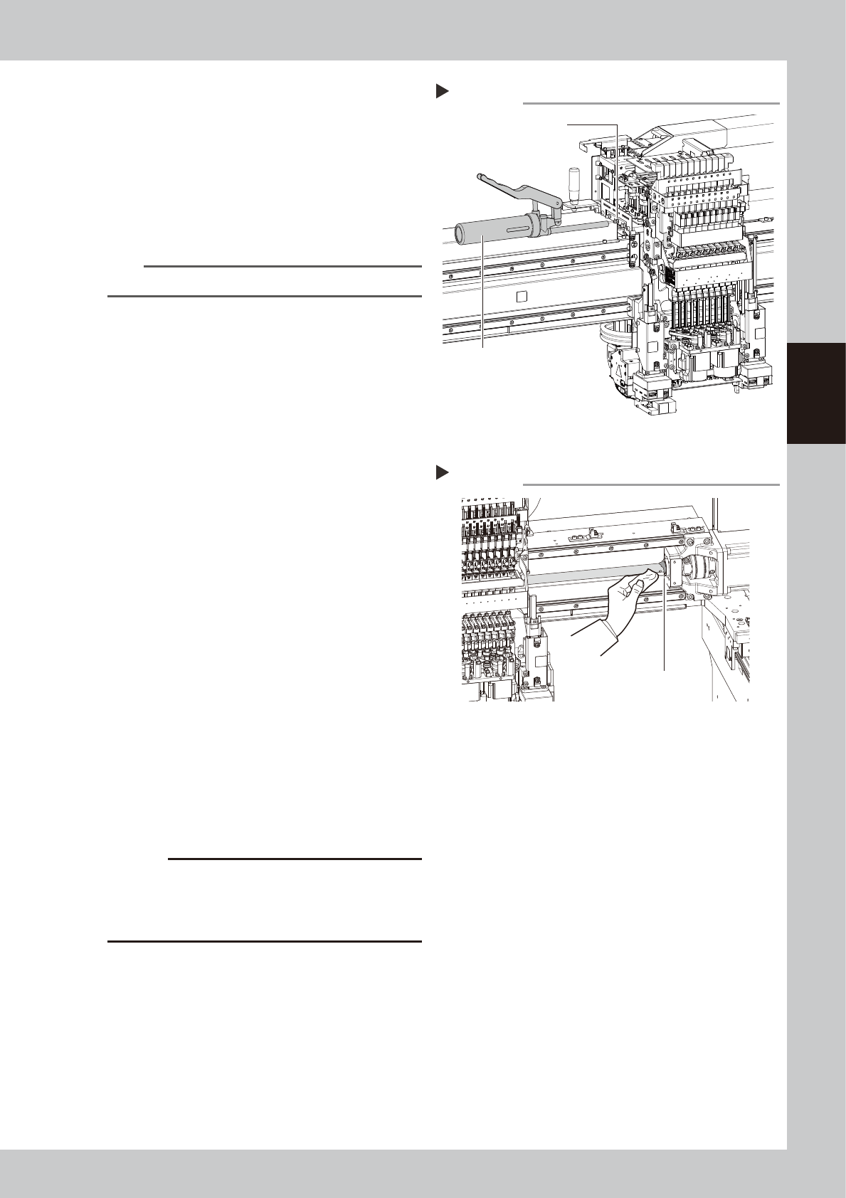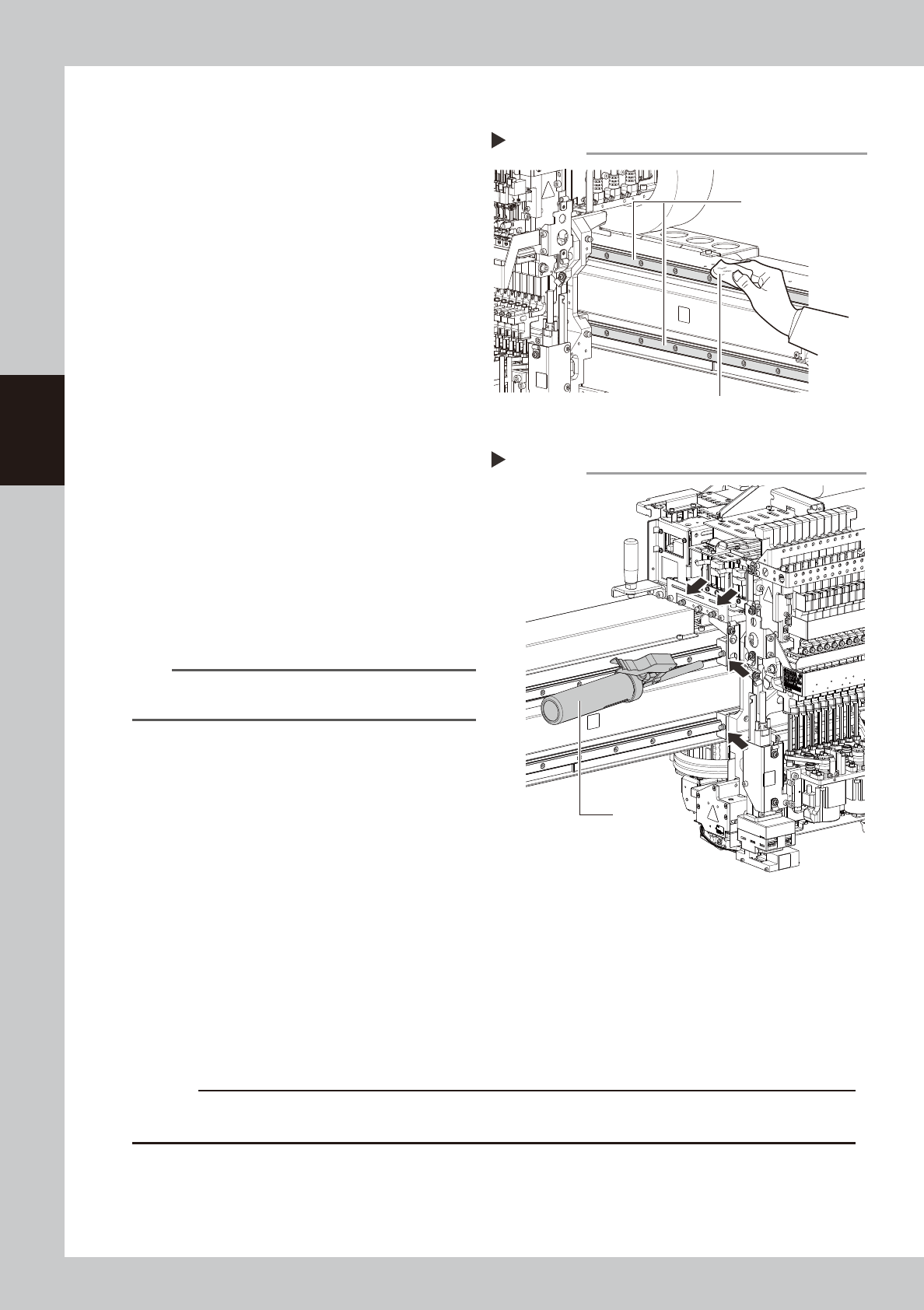 3-15 3 Periodic maintenance items 4 Apply grease. 1. As shown in the figure on the right, move the head unit to one side manually so that the grease nipple can be seen. 2. The grease nipple at the center of those aligned…