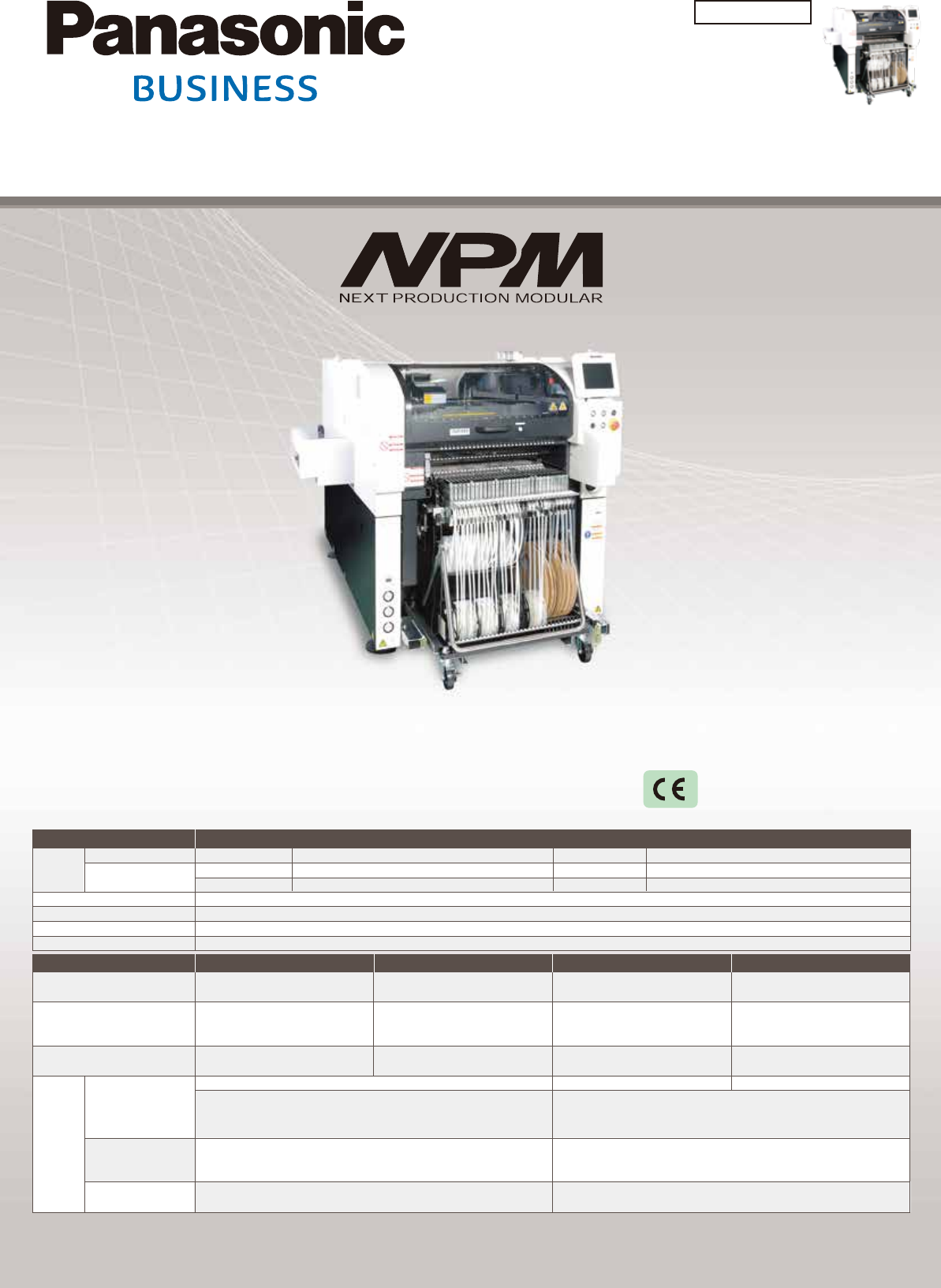Manufacturing Process Innovation Mode l N ame Mode l No .NM-EJM5E N P M - W 2 S *5:Excluding the monitor, signal tower and ceiling fan cover. *6:±25 μm placement support option. ( Under conditions specified by Panasonic …