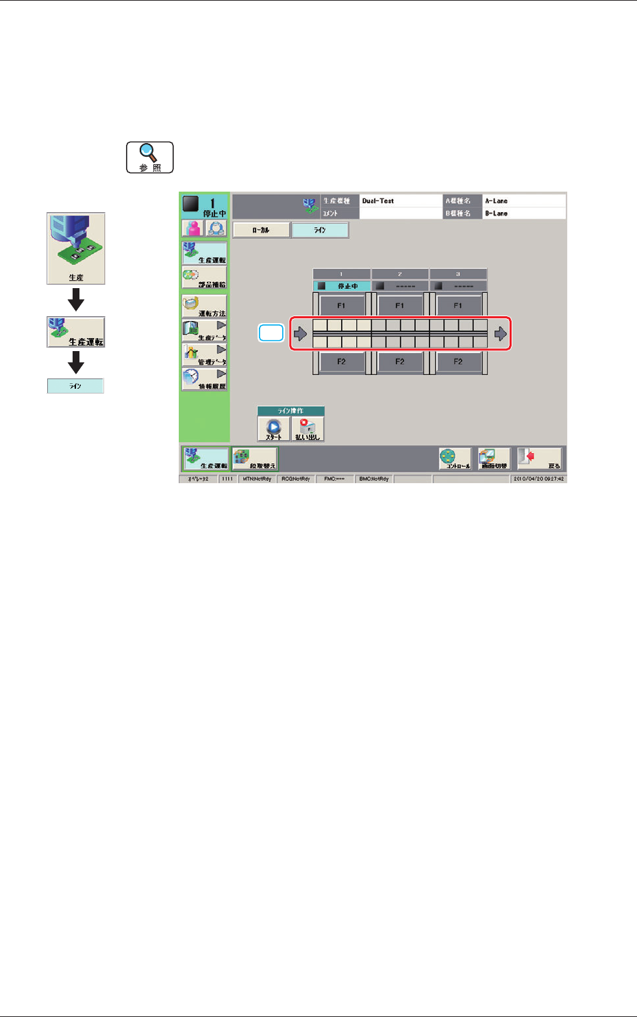 生産ラインの運転状態の確認、およびライン操作を行います。