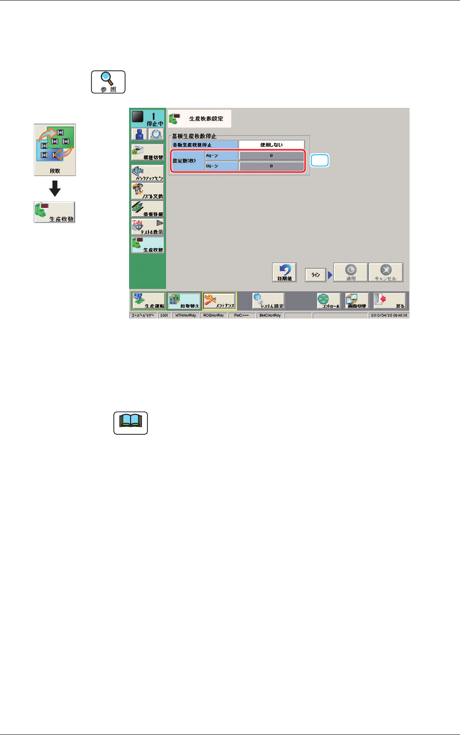設定した枚数は、“生産運転”画面の“生産枚数”にも表示されます。