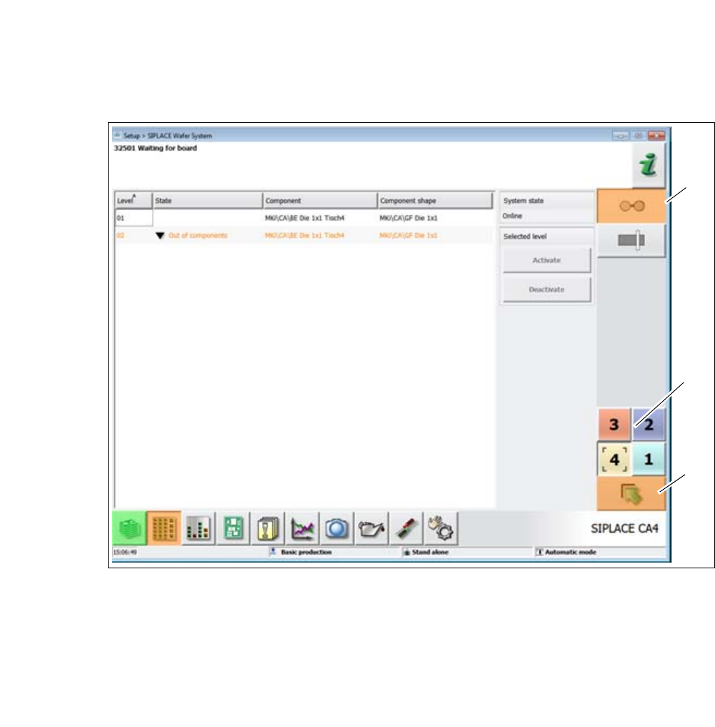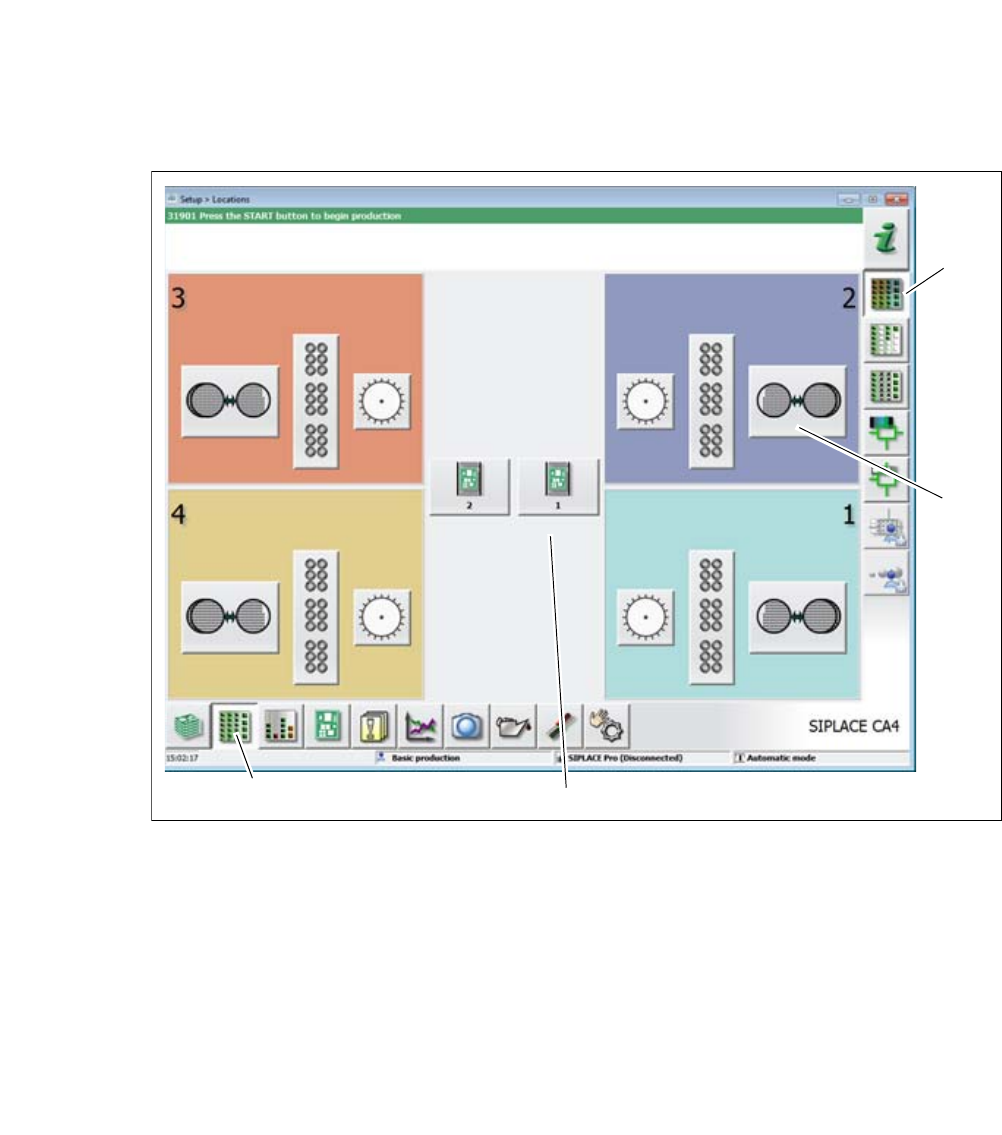 Click, for example, on the SIPLACE Wafer System (SWS) of gantry 1 (button 4), to open the