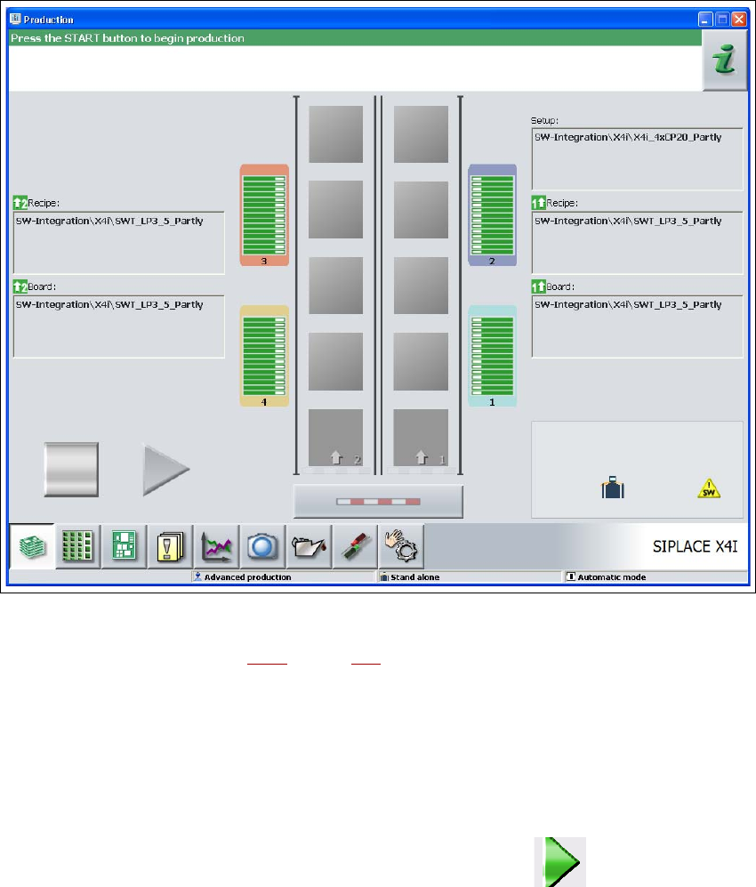 Návod k obsluze SIPLACE X-série Úkoly na stroji Od verze software SR.70x.xx Vydání 01/2011 Zapnutí linky SIPLACE 301 5 Obr . 5.3 - 1 Náhled "Produkce" po na č tení software stanice (na p ř íkladu SIPLACE X4I) V…