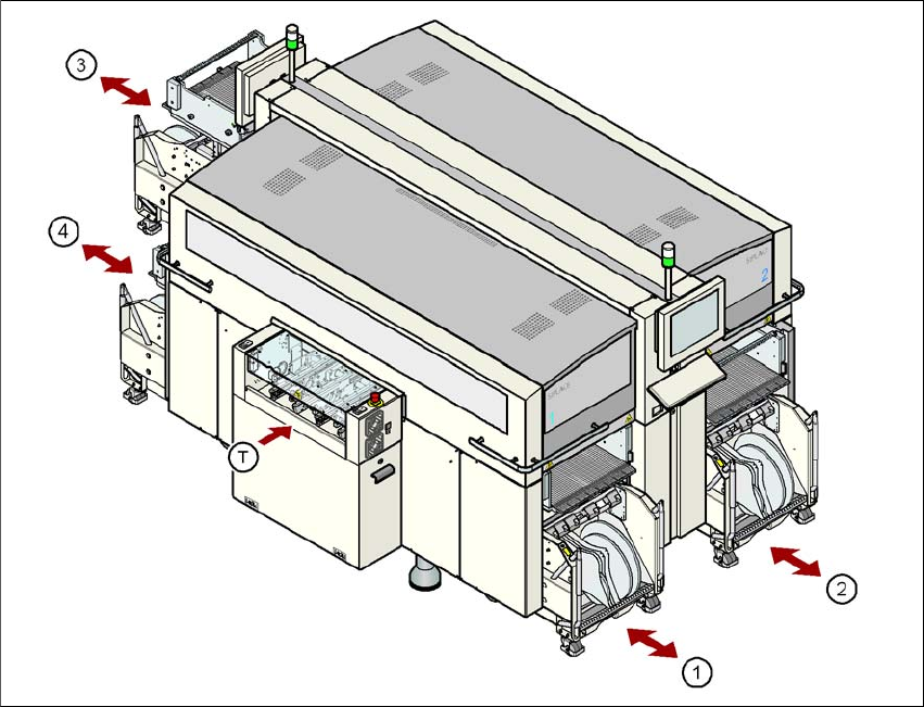 Obr. 3.10 - 1 Místa instalace vozíků součástek, SIPLACE X-série