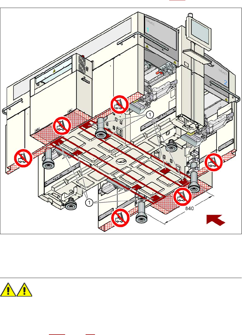 → Zasuňte vidle vysokozdvižného vozíku pod automat podle obr. 4.3 - 1.