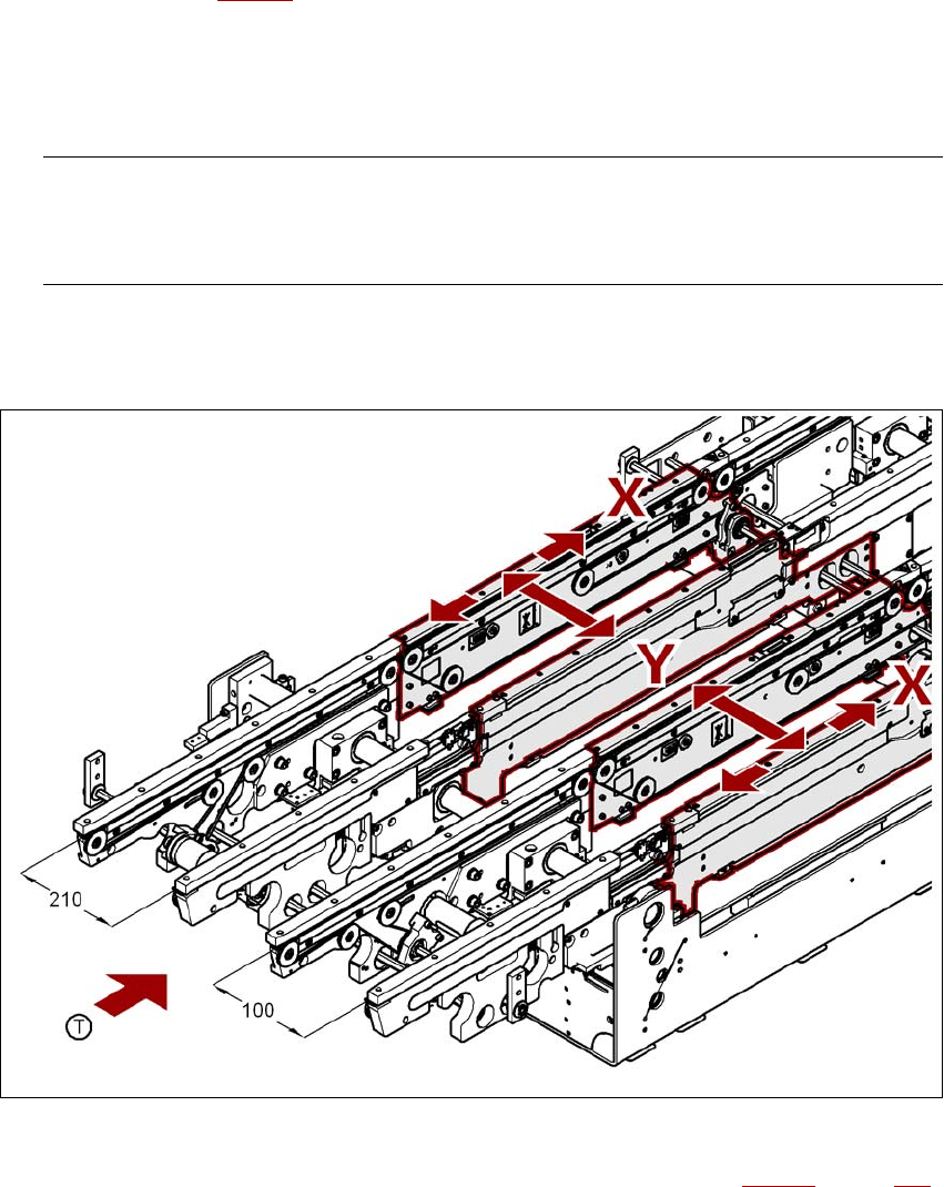 → Položte strojní vodováhu vždy ve směru os X a Y na bočnice transportu desek v oblasti osa-