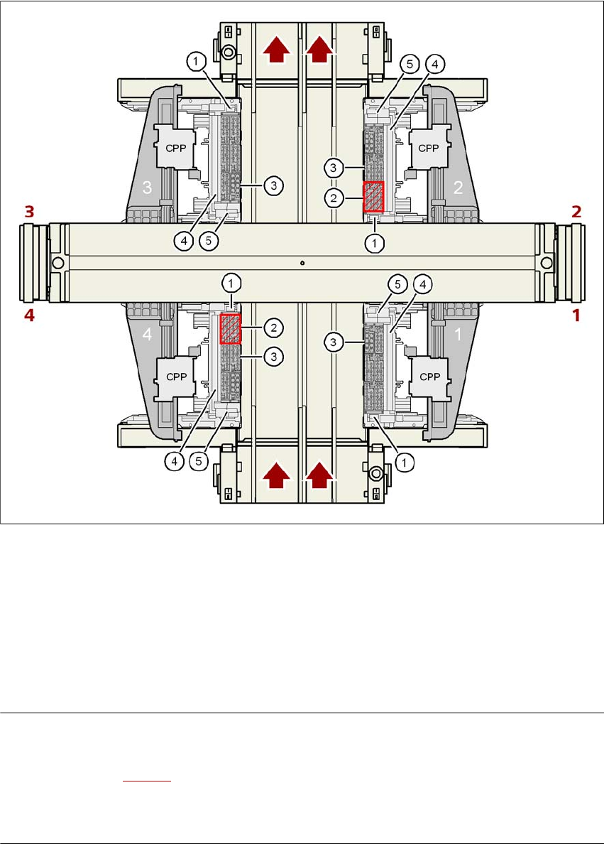 Na stanovištích 1, 2, 3 a 4 mohou být instalovány až 2 měniče pipet pro hlavu CPP (pos. 1 a 2 na