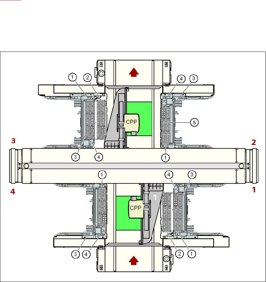 Na stanovištích 1, 2, 3 a 4 mohou být instalovány až 2 měniče pipet pro hlavu CPP (pos. 1 a 2 na