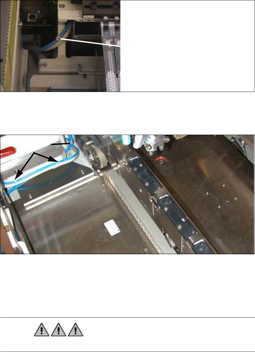 1 Nachrüstanleitung RV 6-DLM1-Kopf u nd PPW R V6 Standard (O ptionen) SIPLACE S -25 HM 1.4 Ablauf: Umbau H ardware Ausgabe 02/01 30 Abb. 1.4.12 Kabel und Druckluf tschlauch am T räger für Pipettenwechsler befestigen Å Be…