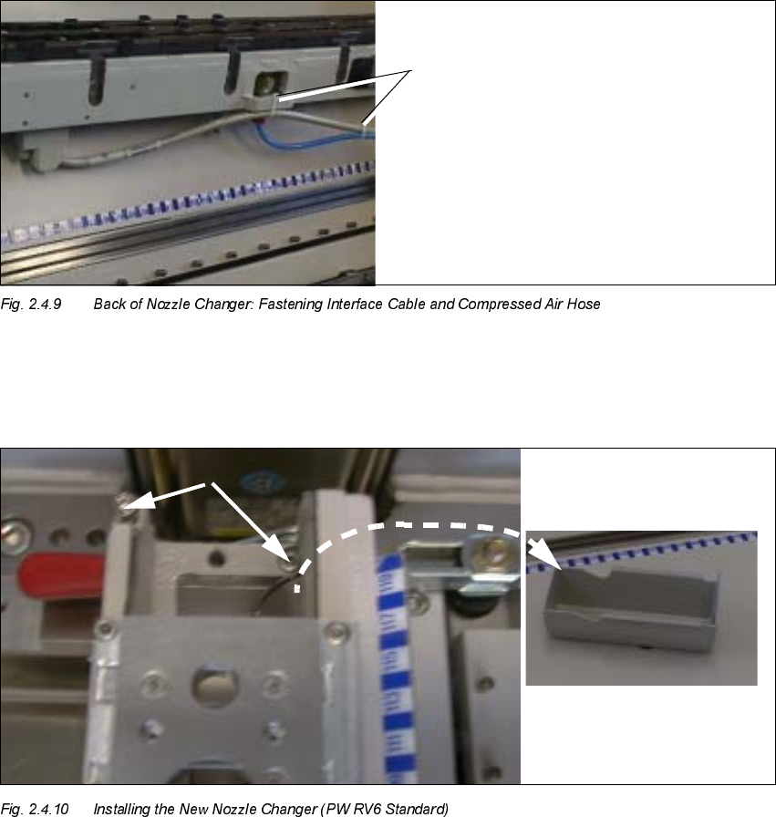Å Fasten the interface cable of the nozzle changer and the compressed air hose to the back of