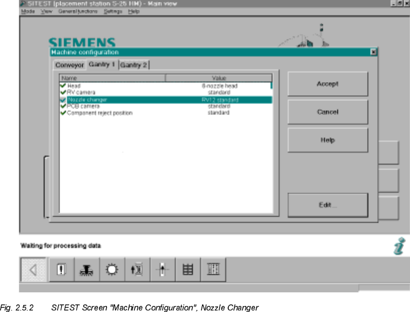 SIPLACE S-25 HM 2 Retrofitt. Instruct. RV6-DLM1 Head & Nozzle Chang. RV6 Standa rd (Optionen) 02/01 Issue 2.5 SITEST: Adjust Configuration, Entry Zero Point Compens. Values RV6 Head 73 Å Cl ick on " RV6 S tandar…