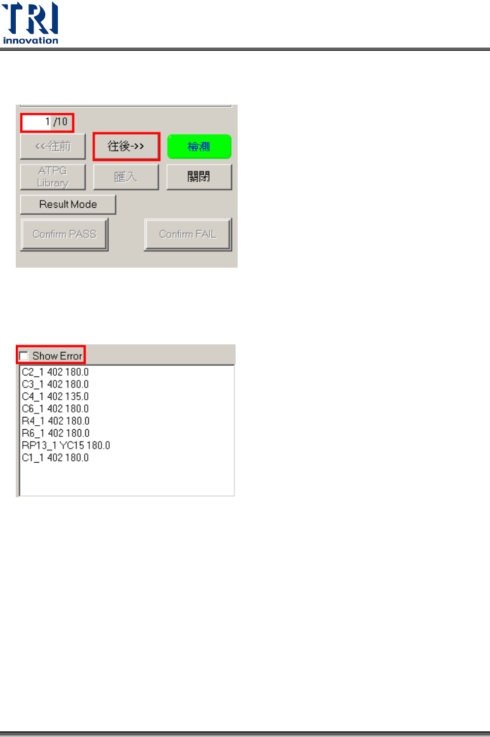5. 元件列表區點選[Show Error]時,可將該 FOV 所檢測錯誤的元件名稱顯示出來供